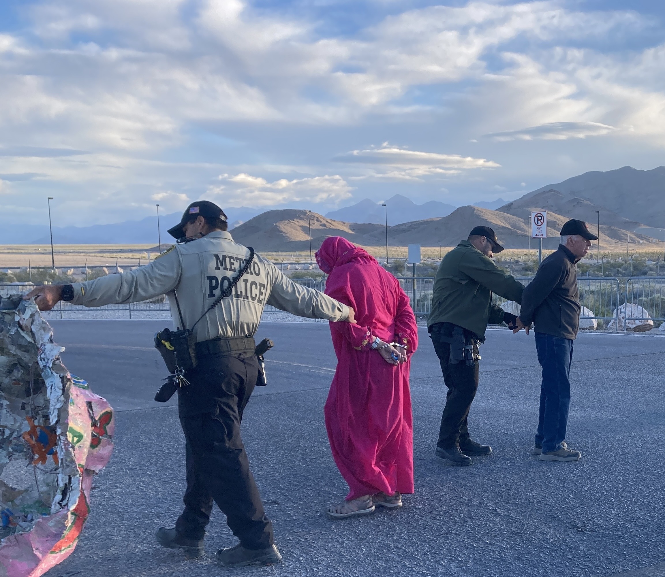 Protester John Amidon was one of the nine to receive citations. Amidon, a veteran, said the Nevada Desert Experience Sacred Peace Walk involved roughly 30 people and was aimed at raising awareness of what Amidon described as an “insane” war in Iran.